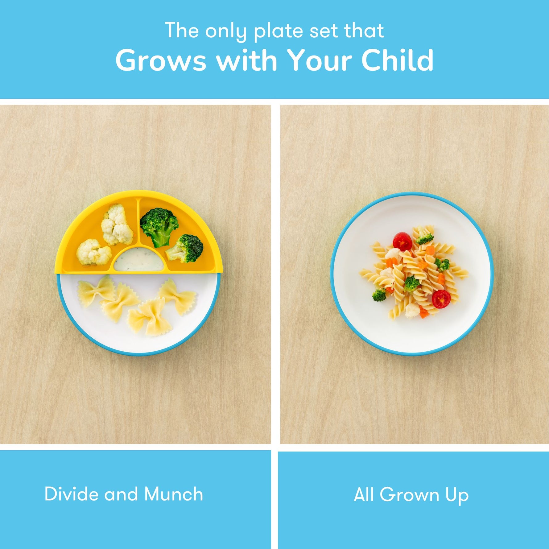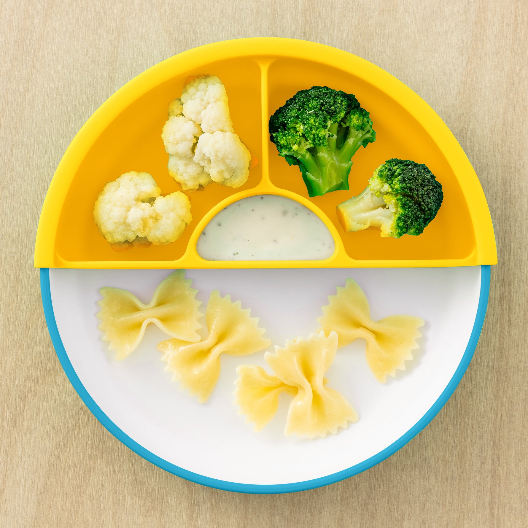 Designed to make self-feeding less frustrating and way less messy. Its unique scoop design helps guide food onto the spoon, not off the plate. Made from sturdy, plant-based materials, it features removable silicone dividers that adapt as your child grows.